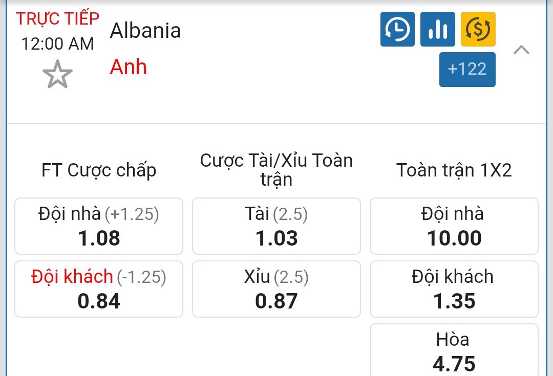 2. Đính kèm ảnh chụp màn hình hiển thị tỷ lệ cược & rõ 2 đội, ghi rõ đội chọn.